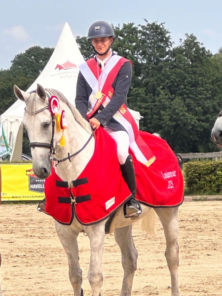 Se vende el campeón estatal de Jóvenes Jinetes 2025 Berlín-Brandenburgo. Désolé de Semilly impresiona con un enorme potencial y una actitud extremadamente positiva hacia el deporte. Ha competido con una joven jinete hasta la clase M** con éxito y es ideal para jóvenes jinetes bien montados. En el manejo y bajo la silla, siempre se muestra amable, confiable y sin complicaciones. En el recorrido, requiere un jinete con visión y sensibilidad, que sepa apreciar su calidad adecuadamente. Désolé de Semilly se entrega exclusivamente en las mejores manos, que fomenten su desarrollo – solo si las condiciones realmente son adecuadas.