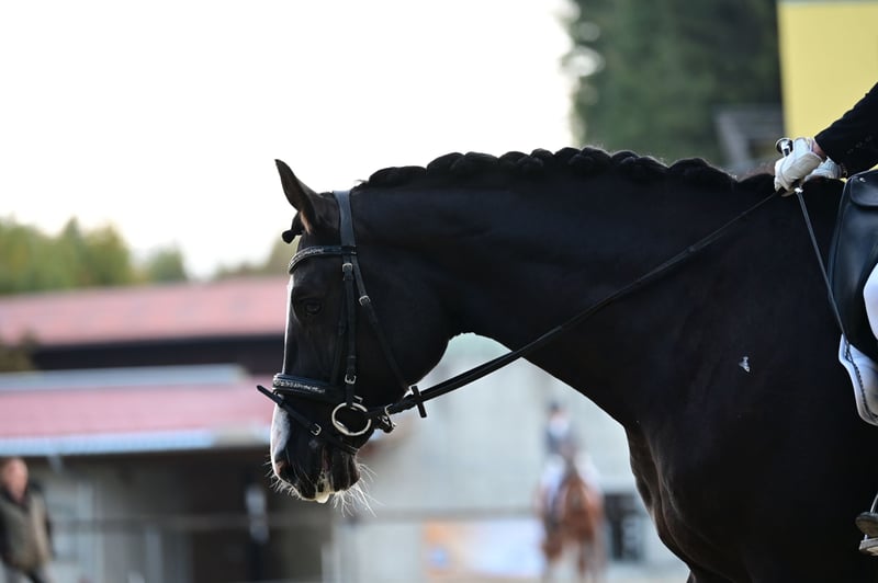 Schweren Herzens biete ich meinen außergewöhnlich lieben Rappwallach zum Verkauf an. Geboren 2016, mit einem imposanten Stockmaß von ca. 180 cm, steht er im edlen Hengsttyp – mit einer auffälligen großen Blesse und vier weißen Stiefeln. Ein echter Blickfang, der überall Eindruck hinterlässt! Dieser Wallach ist einfach ein Schatz im Umgang und unter dem Sattel – total lieb, ehrlich, willig und verlässlich. Immer bemüht, unkompliziert und mit einem tollen Charakter, der jeden Tag Freude bereitet. Ich bin mit ihm bereits mehrere erfolgreiche Turniersaisonen bis zur Klasse L gegangen. Total williges Pferd das immer alles richtig machen will. Neben seiner Dressurbegabung liebt er aber auch die Abwechslung: er geht brav ins Gelände, egal ob durchs Dorf, in den Wald oder über Wiesen – immer entspannt und mutig. Auch Sprünge macht er mit Freude und Gelassenheit mit. Er ist ein echter Partner fürs Leben – für den ambitionierten Reiter, der ein leichtrittiges, arbeitswilliges und gleichzeitig verschmustes Pferd sucht, das einfach Spaß macht. Pferd mit Zukunft im Dressursport Bei ernsthaftem Interesse freue ich mich über eine Nachricht – dieses tolle Pferd sucht nun seinen Menschen, der ihn genauso schätzt wie ich. 💫