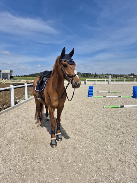 My beautiful gelding (11 years old, approximately 16.1 hh) is looking for a loving forever home. He is a true heart horse with a dream character – honest, affectionate, and always eager to please his rider. Training: - Dressage up to L level - Jumping up to A level He has not competed in recent years but is registered for competitions. He is absolutely well-behaved in handling, loading, and farrier visits, and consistently reliable. As he requires an experienced and confident rider, he is not suitable for beginners. The sale is due to personal reasons. Trial rides possible by arrangement, fee €30 (deductible upon purchase). Please contact me for more information. I wish him a home where he will be supported and loved with heart and understanding. Videos and additional pictures available upon request.