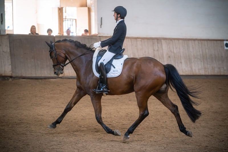 For sale is a stunning Millennium gelding, born in 2015, standing at 16.1 hh. This elegant DSP gelding impresses not only with his refined appearance but also with his exceptional, elastic basic gaits and lovable character. He has successfully competed up to class L in dressage, and flying changes are in progress. In daily training, he consistently strives to please his rider. Despite his calm demeanor, he is not suitable for beginners; he requires a sensitive, experienced rider who can further develop his potential and enjoy their shared time together. Loading is completely straightforward; he remains calm at the trailer and handles all situations confidently. He adapts to new environments with ease. The horse is healthy, regularly vaccinated, and competition-ready. For more information, videos, and if interested, please contact me. A viewing and trial ride can be arranged by appointment.