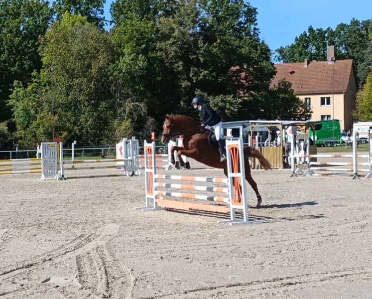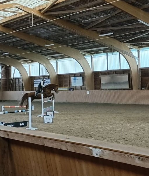 Schweren Herzens verkaufe ich mein geliebtes Springpferd, da ich für ihn einfach nicht die richtige Reiterin bin. Kurze Fakten zu Luigi 289: Zurzeit ist er 4× beschlagen, er ist aber auch schon barhuf M-Springen gegangen. Er ist ein absoluter Liebling im Umgang und besitzt drei tolle Grundgangarten. Außerdem ist er geländesicher und springt auch gerne Mal einen kleinen Geländesprung. In der Herde ist er immer sozial, egal ob Box oder Offenstall. Luigi kennt Anhänger und LKW fahren. Qualität und Vermögen für den hohen Springsport und schwere Klassen ist vorhanden, er springt in Reihen bis 1,35 cm und ging auch schon M-Springen mit steigenden Anforderungen. Letzte Saison wurde er mit einer 16-jährigen Reiterin A-Kreismeister und hat ihr in den Perspektivkader und zu LK4 verholfen. Er kennt Wassergraben, Mauern und Co. und erzielt sehr gute Ergebnisse in Zeit- und Stilspringen (Wertnoten bis 8,6). 5-jährig gewann er bereits A**-Springen, 8-jährig konnte er sich die ersten M-Platzierungen sichern. Vorletzte Saison (2024) gewann er M-Springen und war 8× in den Klassen L und M platziert. 2025 siegte er insgesamt in 4 A*- und A**-Prüfungen und war 10× in den Klassen A*, A** und L hoch platziert. AKU war 2024 ohne Befund, aktuelle AKU kann aber natürlich gemacht werden. Luigi ist bereit für diese Turniersaison, er kann direkt durchstarten (A-L/M). Ich, als absolute Amateurin (18 Jahre, nur LK 6), bin den ganzen Winter mit ihm erfolgreich im Springtraining mitgeritten und er springt im Training aktuell ohne Probleme einen L-Parcours. Luigi braucht allerdings einen erfahrenen Reiter, da er hin und wieder mal testet. Insbesondere auf dem Turnier benötigt er Sicherheit, die ich ihm leider nicht geben kann. Er ist kein Anfängerpferd, aber durchaus für erfahrene Jugendliche, auch z.B. als Kaderpferd, geeignet. Mit dem richtigen Reiter/Reiterin ist er ein Schleifensammler, das hat er letzte Saison eindrucksvoll bewiesen. Außerdem ist Luigi auch ein interessanter Partner für die Dressur. Er kann Außengalopp und Galoppwechsel, wurde aber in der Dressur noch nicht auf Turnier vorgestellt. Seine Hauptdisziplin ist aber das Springen, das macht ihm einfach unglaublich viel Freude. Er will immer auf die andere Seite, springt auch bei ungünstigen Distanzen, verzeiht Fehler und ist nicht guckig. Dies ist kein Notverkauf. Bei ernsthaftem Interesse können weitere Videos auf Anfrage versendet werden.