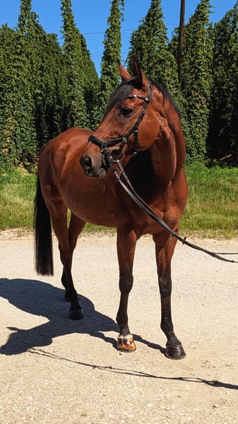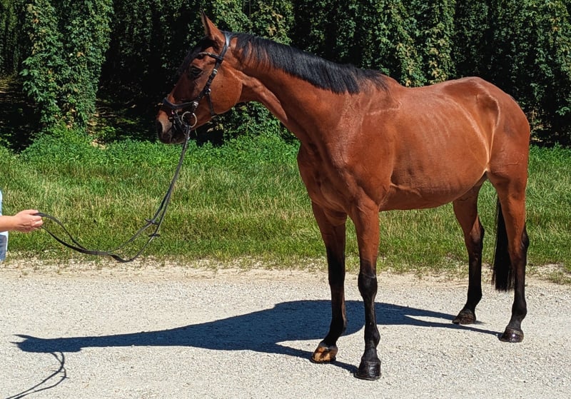 Wir suchen ein liebevolles, passendes Zuhause für einen besonders charmanten Wallach aus besten Linien (Collins 21 x Cil xx). Der 12-jährige Deutsche Sportpferd-Wallach überzeugt mit einem Stockmaß von 1,65 m, einem ausdrucksstarken Exterieur und einem großartigen Charakter. Bis zur M-Klasse im Springsport platziert, hat dieser Wallach seine Klasse bereits vielfach unter Beweis gestellt. Er zeigt sich talentiert, rittig und vielseitig - ein echter Allrounder, der in seiner aktiven Zeit nicht nur im Parcours, sondern auch in anderen Bereichen zu glänzen wusste. Aufgrund eines Befunds wird er ausschließlich als Freizeitpferd verkauft. Eine Rückkehr in den Sport ist medizinisch nicht ausgeschlossen, eine Garantie dafür können wir allerdings nicht gegeben. Deshalb liegt der Fokus klar auf einem Leben als Freizeitpartner mit Ausritten, Bodenarbeit oder Dressurarbeit. Ein echter Gute-Laune-Kumpel: verschmust, verspielt und gleichzeitig motiviert bei der Arbeit. Er ist brav beim Schmied, Tierarzt und lässt sich problemlos verladen. Kurz: ein unkomplizierter und liebevoller Partner mit viel Herz. • Vorne beschlagen • Regelmäßig geimpft (inkl. Herpes) • Liebt die Kombination aus Box mit Paddock und regelmäßigem Koppelgang Ein passendes, pferdegerechtes Zuhause steht für uns im Vordergrund -- Platz vor Preis. Der Wallach kann gerne nach vorheriger Absprache besichtigt werden.