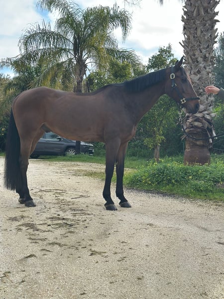 Quality Jump, also known as Quaisa Quim, has two names like any beloved horse. He is a 12-year-old gelding by the exceptional Quality Time, out of Divina (by Diarado x Calido). This impressive pedigree makes him a versatile and talented horse, well-suited for show jumping, ground work, and dressage. He has been successfully competed by both male and female riders at heights ranging from 1.15 m to 1.30 m. He prefers light bits and a confident, forward-riding rider, as he actively engages his back and shows initiative during jumping. Quality Jump has a very friendly and cooperative temperament, while remaining attentive under saddle. He is approximately 16.1 hands tall, travels calmly, and is social with other horses.