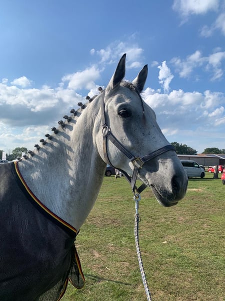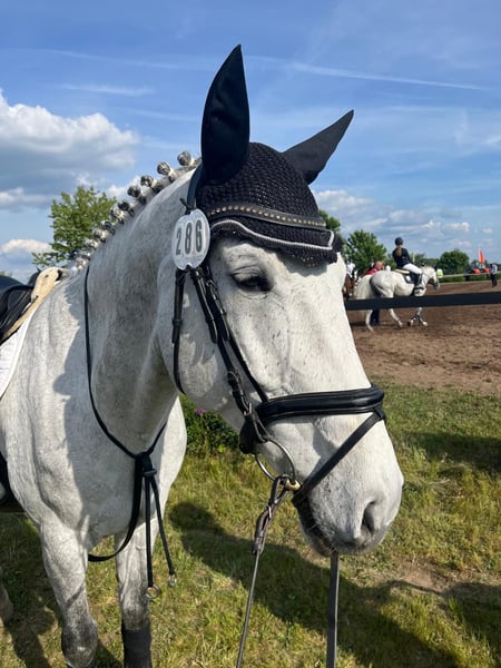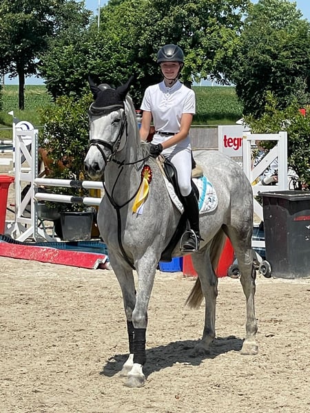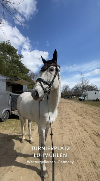 German Sport Horse – Gelding – 12 years old – 16.1 hh – always healthy A motivated and experienced gelding with competition successes up to M*, M level. Well-bred, cautious, and with great scope over fences. He has shown significant progress under the rider, aims to please, and consistently displays a positive work attitude. He jumps cleanly and reliably in both training and competitions, including his changes. Clear-headed and dependable both in the ring and during training. Absolutely uncomplicated in handling, well-behaved at the vet, farrier, and loading – a true friend in the stable. Always healthy, well-groomed, and ready to go at any time. An honest sport horse for ambitious riders seeking a motivated and reliable partner.