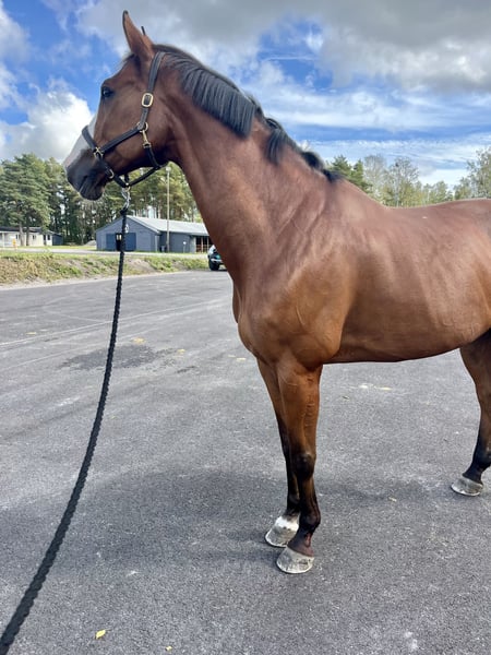 Sire: Carrico (by Catoki), dam’s sire: Couleur Rouge. “Carrico” was previously ridden by Henrik von Eckermann, and “Couleur Rouge” is bred following the same formula as Ludger Beerbaum’s “Couleur Rubin”. After nearly 4,5 wonderful years with this fantastic horse, I am unfortunately forced to sell due to my own health, and because he is too good not to be actively used in the sport. Carrico is a horse with a wow-factor in every way – appearance, over fences, and on the flat. He is very well and correctly basic trained. He has three good gaits, with the canter especially worth highlighting. Lots of swing and elasticity. He gives a truly unique riding feeling and is a dream to sit on! Carrico is a powerful jumper with a great deal of untapped potential. He jumps with great carefulness and scope. He loves to jump, and the higher the fences, the more power he shows. In Germany, he competed in all age classes from the age of 4, and was competing at 1.35m when I bought him as an 8-year-old. At that time, he was jumping 1.40m+ in training. The plan was to compete in medium-level classes when I bought him, until I realized I am not as brave as I once was, in addition to struggling with significant back problems. Carrico has therefore been lightly used in jumping since I bought him, but has attended occasional gymnastics and jumping training with Geir Sande, as well as several pay & jump events and one competition with a pony rider. He finds his distances and sorts things out well himself, and prefers a rider with good balance who does not interfere too much. He is not strong and is responsive to aids. Carrico could also be used for dressage, with his lovely gaits and solid basic training – you can practically just cruise through various exercises. He is not highly trained in dressage, but definitely has potential for it. A very kind and uncomplicated horse, easy with the vet and farrier, good to load, and safe in traffic. He can be ridden out both alone and with others. Naturally a bit playful, and never a dull ride on Carrico. He has also been ridden and jumped at low level by my daughter since she was 12. Healthy and fit. He has had a few minor incidents during the years I’ve had him, but never any wear-and-tear injuries. He had never been treated or ill before I bought him, and was thoroughly examined and X-rayed by a German Olympic veterinarian at purchase. Flexion test on September 16th without remarks. Approved vet. check with x-rays March 30. (small findings, normal for his age) Up to date on vaccinations and dental checks. Insured. Sold to an experienced rider in a good system. Videos can be seen on ClipMyHorse and Rimondo, as well as Instagram @linda.j.svensson Please only serious inquiries from experienced and ready-to-buy horse people. Sold to a good price due to not having a rider for him at the moment.