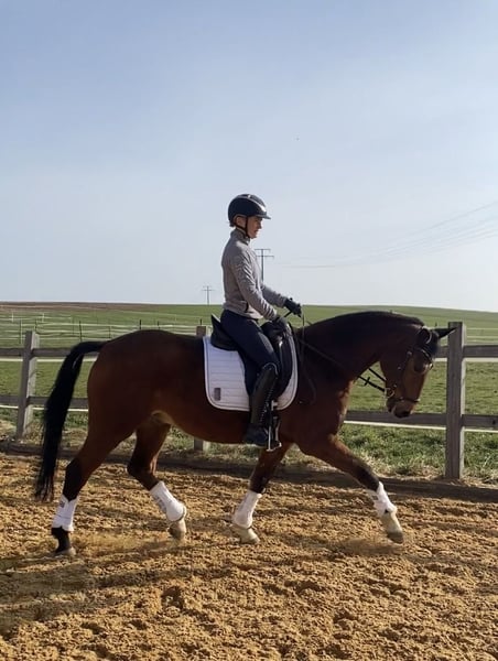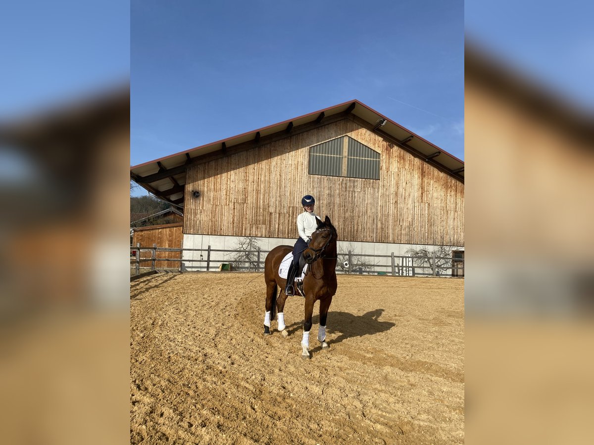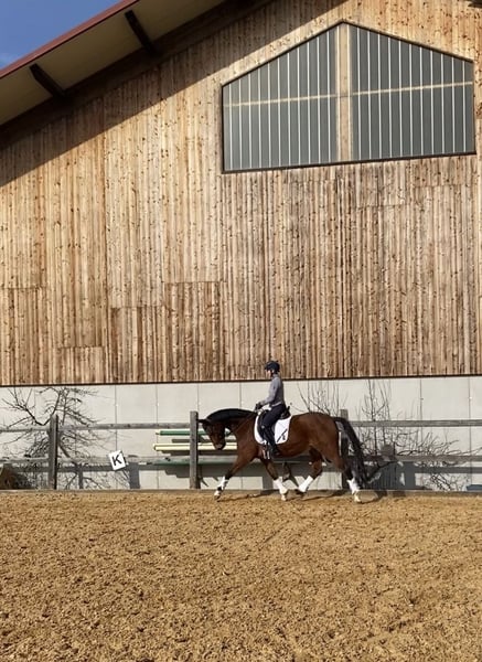 Bis S-Dressur platzierter brauner Wallach, 4-jährig von Züchter gekauft und seither ausschließlich in unserem Besitz, als Freizeitpferd zu verkaufen. Er hat drei sehr gute und angenehme Grundgangarten, Schwung und Gangfreude. Er ist sehr gut ausgebildet, leichtrittig und unglaublich lieb. Er ist vielseitig einsetzbar (Dressur, Gelände, Cavaletti, Bodenarbeit) und auch für Jugendliche sehr gut geeignet. Der Wallach ist unkompliziert im Umgang und sehr verlässlich und ehrlich. Uns ist wichtig, dass er nicht mehr im Turniersport, sondern als Freizeitpferd eingesetzt wird. Wir suchen für ihn einen guten Platz mit viel, möglichst täglichem Koppelgang (auch in Gruppe möglich).