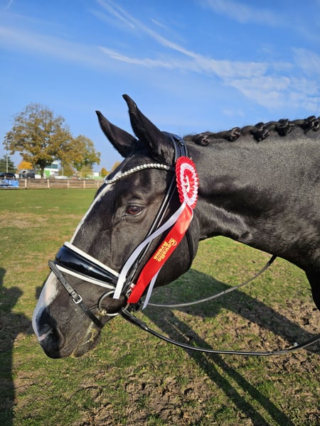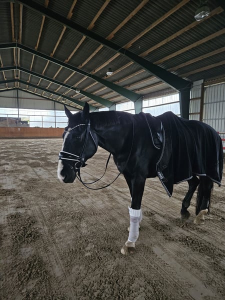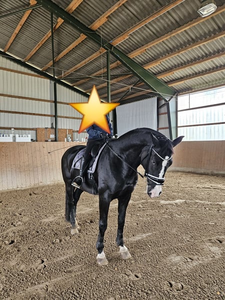 Dressurbetonter Wallach als Freizeitpferd zu verkaufen, sehr gut ausgebildet im A bis L Bereich und im täglichen Umgang brav, unkompliziert und menschenbezogen. Deutsches Sportpferd 16 Jahre 1,75 groß Rappe Turniererfolge Dressur A* und A** Aufgrund von zwei verheilten Sehnenschäden nicht mehr als Sportpferd einsetzbar. Moderate freizeitmäßige Arbeit auf E bis A Niveau ist jedoch kein Problem. Er kennt Geländeritte und geht gern zu zweit oder in der Gruppe hinten. Er ist ein zuverlässiger Freizeitpartner, absolut brav im Umgang, auch mit Kindern. Trägt auch kleine Reiter gehorsam, leicht in der Anlehnung. Steigt selbstständig in den Pferdeanhänger und steht ruhig und geduldig, alleine verladen ist kein Problem. Beim Schmied gelassen und brav. Handicaps: - Allergiker; Haltung am besten im Offenstall mit 24/7 staubfreiem Heu oder Heulage aufgrund von Stauballergie (neigt zu Husten und Nasenausfluss bei staubigen Bedingungen) Heu muss sehr gute Qualität haben; Pferd reagiert auf Schimmel mit Husten, bei Einhaltung der Maßnahmen keine Einschränkungen und Symptome - 2 ausgeheilte Sehnenschäden aus 2019 und 2021, daher kein Springen und keine Dressurabeit ab L aufwärts Beide Sehnenschäden wurden tierärztlich behandelt und sorgfältig auskuriert und therapiert u.A. mit Lasertherapie, Zusatzfutter und kleinteiligem Trainingsplan zum nachhaltigen Aufbau der Sehnenstruktur. Es wird ein neues Zuhause gesucht in dem er als Freizeitpartner noch wirken und strahlen kann, mit artgerechter Haltung und Zugang zu Weideflächen in Pferdegesellschaft. OP-Versicherung Premium Plus Tarif zur Übernahme vorhanden; alle 4 Beine trotz der Diagnosen vollumfänglich mitversichert. Keine erneute Gesundheitsprüfung durch die Versicherung, diese läuft auf den neuen Besitzer weiter wenn gewünscht. Bitte Anfragen mit kurzer Darstellung des potentiellen zukünftigen Zuhauses. Platz vor Preis. Vielen Dank.