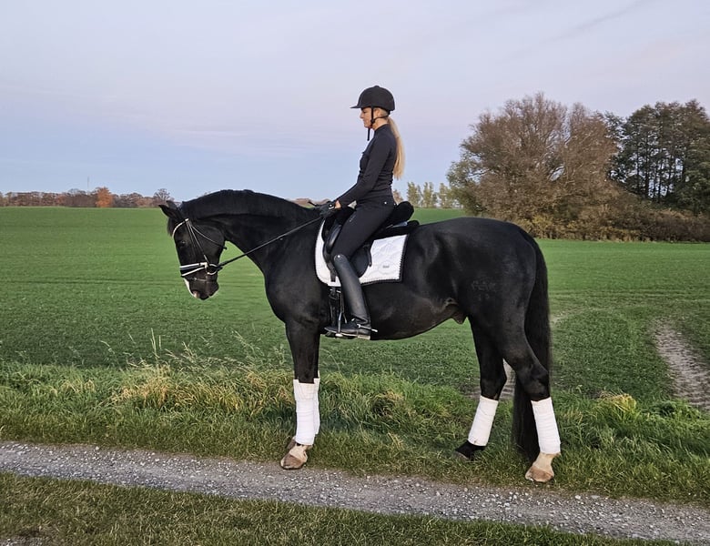 English translation: A dressage-oriented gelding for sale as a leisure horse, very well-trained from A to L level and calm, reliable, and personable in daily handling. German Sport Horse 16 years old 16.1 hh Dark bay (rappho) Competition success in Dressage Levels A* and A** Due to two healed tendon injuries, no longer suitable for competitive riding. Moderate recreational work at E to A level poses no problem. He is experienced in trail riding and enjoys going out in pairs or groups, often at the back. He is a dependable leisure partner, absolutely well-behaved in handling, even with children. He also carries small riders obediently, easy to keep in contact and light in the bridle. He loads himself onto the horse trailer calmly and patiently, standing quietly alone. Loading alone is no issue. He is also calm and well-behaved at the blacksmith. Handicaps: - Allergic; best kept in an open stable with dust-free hay or haylage 24/7 due to dust allergy (tends to cough and have nasal discharge in dusty conditions). The hay must be of very good quality; the horse reacts to mold with coughing, but with proper management, there are no restrictions or symptoms. - Two healed tendon injuries from 2019 and 2021, therefore no jumping or dressage work above Level L. Both tendon injuries were veterinary treated and carefully rehabilitated, including laser therapy, supplementary feed, and a detailed training plan to promote the long-term health of the tendons. A new home is sought where he can continue to shine as a leisure partner, with species-appropriate care and access to pasture in a social horse environment. A premium plus OP insurance policy is available for transfer; all four legs are fully insured despite the diagnoses. No additional health check required by the insurance, and the policy can be transferred to the new owner if desired. Please inquire with a brief description of the potential future home. Priority given to the environment over price. Thank you.