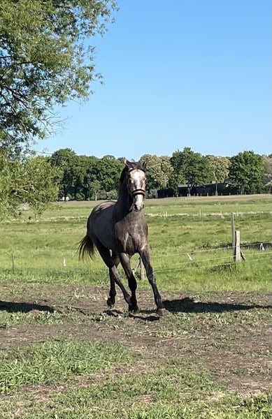 Zum Verkauf steht ein vielversprechender, am 03.05.2023 geborener Schimmelwallach des bewährten Vererbers Call me Crazy, mütterlicherseits abstammend von Calidrio – ein Pedigree mit hervorragender Grundlage für Sport und Freizeit. Dieser charmante DSP-Youngster überzeugt mit seinem menschenbezogenen Wesen und ist sehr brav im Umgang. Er wächst artgerecht in einer Wallachgruppe unterschiedlichen Alters auf, ist sozial kompetent, ausgeglichen und gesund. ✅ Rasse: Deutsches Sportpferd (DSP) ✅ Geboren: 03.05.2023 ✅ Farbe: Schimmel ✅ Erwartetes Endmaß: ca. 1,70 ✅ Abstammung: Call me Crazy x Calidrio ✅ Charakter: freundlich, ausgeglichen, umgänglich ✅ Gesundheitsstatus: regelmäßig geimpft und entwurmt ✅ Standort: Nassenheide ✅ Preis: 7.500 € VB Ein Nachwuchspferd mit besten Anlagen für den Spring- oder Vielseitigkeitssport, aber auch ein toller Partner für den ambitionierten Freizeitreiter. Bei Interesse gern mehr unter www.ufanohof.de oder 0179/7542321