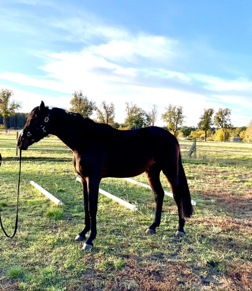 Wir verkaufen einen von uns liebevoll aufgezogenen Wallach in schöner dunkler Jacke. Modern aufgemacht, steht er korrekt da und bringt über beide Eltertiere sehr gute Springveranlagung mit. Chaplin ist ein sensibler, aber zugewandter Strahlemann, der zu gefallen weiß. Er wurde regelmäßig geimpft, entwurmt, ist schmiedefromm, gut sozialisiert und bestens vorbereitet für eine Zukunft als Sportler. Wir wünschen uns für ihn ein schönes und artgerechtes Zuhause. Nicht an Händler!