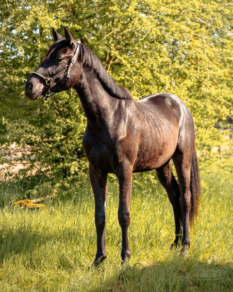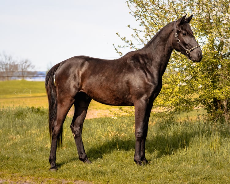 For sale is Drolli SCH, a 2023-born gelding, a German sport horse with an current height of approximately 15.5 hands. He is still growing and is expected to settle into a medium frame – ideal for riders looking for a compact, agile, and athletic horse. As a foal, Drolli was awarded premium foal status at the regional foal licensing, highlighting his quality in type, movement, and overall impression from an early age. His pedigree also leaves nothing to be desired: His sire is the talented Dark Dominator, a modern, performance-oriented Holsteiner stallion with numerous placements in show jumping competitions up to class M and over 30 wins in his young years. He descends from the internationally successful Dominator Z – a highly interesting lineage for show jumping. On the dam’s side, Drolli carries proven genes for rideability, strength, and character through Cher v. Rasso Royal x Capitol II – a combination that opens up versatile possibilities. Cher impressed in her mare performance test, particularly in jumping, earning an outstanding score of 9.5 for her jumping ability, which confirms her quality over fences. This dam line has a solid sporting background and a strong performance drive. Drolli has been raised appropriately in a herd, is healthy, regularly vaccinated and dewormed, and is familiar with basic foal handling. He is friendly, clear-minded, and people-oriented. Leading, grooming, tying, etc., he handles confidently. He offers excellent prospects for ambitious leisure riders or trainers seeking a talented young horse for dressage, show jumping, or eventing. We are happy to provide further information, photos, or videos upon request. Serious inquiries are welcome!