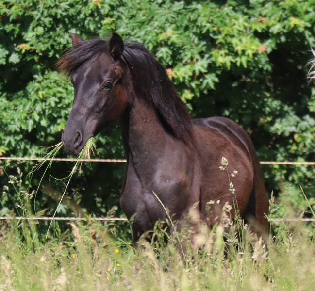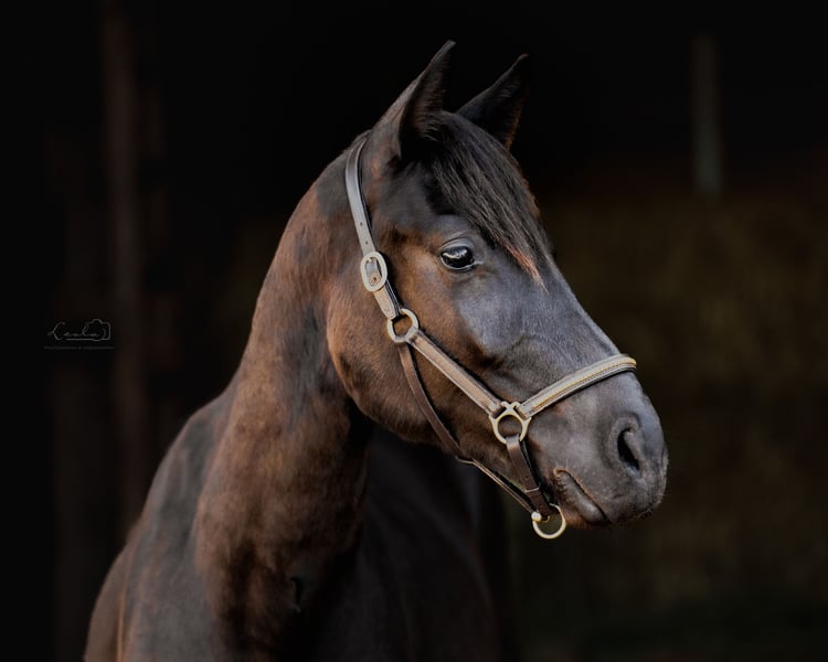 Zum Verkauf steht der 2023 geborene Wallach Drolli SCH, ein Deutsches Sportpferd mit einem aktuellen Stockmaß von ca. 155 cm. Er ist noch im Wachstum und wird sich voraussichtlich im mittleren Rahmen einpendeln – ideal für Reiter, die ein kompaktes, wendiges und sportliches Pferd suchen. Bereits als Fohlen wurde Drolli bei der regionalen Fohlenprämierung als Prämienfohlen ausgezeichnet – ein früher Hinweis auf seine Qualität in Typ, Bewegung und Gesamteindruck. Auch seine Abstammung lässt keine Wünsche offen: Sein Vater ist der talentierte Dark Dominator, ein moderner, leistungsbereiter Holsteiner Hengst mit zahlreichen Platzierungen in Springprüfungen bis Klasse M und über 30 Erfolgen in jungen Jahren. Er stammt vom international erfolgreichen Dominator Z ab – eine hochinteressante Linie für den Springsport. Mütterlicherseits bringt Drolli durch Cher v. Rasso Royal x Capitol II bewährte Gene für Rittigkeit, Kraft und Charakter mit – eine Kombination, die vielseitige Möglichkeiten eröffnet. Cher überzeugte in ihrer Stutenleistungsprüfung insbesondere im Springen: Für ihr Springvermögen erhielt sie die herausragende Note 9,5, was ihre Qualität im Parcours eindrucksvoll bestätigt. Eine Mutterlinie mit sportlicher Substanz und Leistungswillen. Drolli wächst artgerecht im Herdenverband auf, ist gesund, regelmäßig geimpft und entwurmt, kennt das Fohlen-ABC und zeigt sich im Umgang freundlich, klar im Kopf und menschenbezogen. Führen, Putzen, Anbinden etc. meistert er souverän. Er bietet beste Voraussetzungen für ambitionierte Freizeitreiter oder Ausbilder, die ein talentiertes Nachwuchspferd suchen – sei es für Dressur, Springen oder Vielseitigkeit. Gerne senden wir auf Wunsch weitere Infos, Bilder oder Videos. Wir freuen uns über ernst gemeintes Interesse!