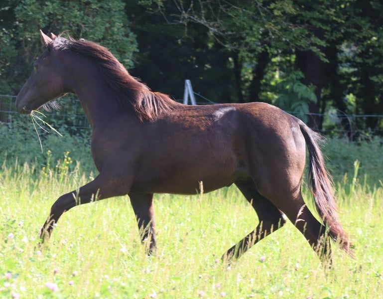 À vendre : le jeune hongre Drolli SCH, né en 2023, un cheval de sport allemand avec une taille au garrot actuelle d’environ 155 cm. En pleine croissance, il devrait se stabiliser dans une taille moyenne – idéal pour les cavaliers recherchant un cheval compact, agile et sportif. Déjà foal, Drolli a été distingué lors de la sélection régionale des foals en tant que foal médaillé – un premier signe de sa qualité en termes de type, de mouvement et d’impression générale. Son pedigree ne laisse rien à désirer : son père est le talentueux Dark Dominator, un étalon holsteiner moderne, performant, avec de nombreuses places en concours de saut d’obstacles jusqu’à la classe M et plus de 30 succès en jeunes années. Il descend de Dominator Z, un sang très intéressant pour le saut d’obstacles au niveau international. Côté maternel, Drolli hérite de gènes solides pour le dressage, la force et le caractère, grâce à Cher v. Rasso Royal x Capitol II – une combinaison offrant de nombreuses possibilités. Cher s’est distinguée lors de sa performance d’étalonneuse, notamment en saut d’obstacles, où elle a obtenu la note exceptionnelle de 9,5 pour ses qualités de saut, confirmant son potentiel en parcours. Une ligne maternelle avec une forte substance sportive et une volonté de performer. Drolli grandit dans un groupe de pâture, dans des conditions adaptées, il est en bonne santé, régulièrement vacciné et vermifugé, connaît les bases du poulinage et se montre amical, clair dans sa tête et proche de l’humain. Il maîtrise la conduite en main, le pansage, l’attache, etc., avec assurance. Il constitue une excellente option pour des cavaliers de loisirs ambitieux ou des formateurs à la recherche d’un jeune cheval prometteur – que ce soit pour le dressage, le saut ou le concours complet. Nous serions heureux de vous transmettre toute information complémentaire, des photos ou des vidéos sur demande. Nous attendons avec plaisir un intérêt sérieux !