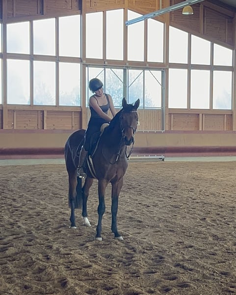 Escalante, bei uns Calli genannt ist ein 3 jähriger, 167cm großer DSP Wallach. Roh zu mir gekommen lernte er nun in seinem Tempo den Reiter kennen und zeigt sich in jeder Situation gelassen. Ausbildungsstand derzeit sind die GGA in der Halle, wo er mit weichen, ausdrucksstarken Gängen überzeugt. Er ist eher der Typ Pferd, der lieber alles erstmal ruhig und langsam angeht und nach und nach mit Sicherheit aufgeht. Daher ist er ein tolles Pferd für ambitionierte Freizeitreiter. Das Anreiten mit ihm hat sich unglaublich unkompliziert dargestellt. Er vertraut dem Menschen und kann Unklarheiten mit Ruhe lösen. Das macht ihn bereits jetzt zu einem sicheren Freizeitpartner. Charakterlich ist er total brav und durchgehend händelbar. Mit anderen Pferden gut verträglich und verspielt. Bei uns steht er in einer jungen Wallachgruppe. In der Rangordnung hält er sich mittig. Mit Stuten kommt er aber auch gut klar. Bei Fragen gerne unter 01702924716 telefonisch oder per WhatsApp. Privatverkauf.