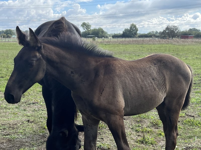 Verkaufe nach liebevoller Aufzucht diesen wundervollen 3 jährigen Wallach von Cadeau Noir. Stockmaß 169cm Er ist am 13.07.22 geboren und wir haben ihn seit dem liebevoll in einer kleinen Herde aufgezogen. Er kennt alle Ereignisse, die so im täglichen Pferdeleben einem begegnen können ( Traktor, Hunde, Hufschmied, Tierarzt, Kutschen, Anhänger fahren) Er lässt sich brav führen, putzen und steht nun in den Anfängen der Longenarbeit. Er ist im Umgang ein wahrer Schatz und stets Menschenbezogen und brav. Seine Qualität in den Grundgangarten lässt keine Wünsche offen und lässt nach weiterer liebevoller und fachkundiger Ausbildung auf ein Herzenspferd für den Dressursport, Fahrsport oder Freizeitsport hoffen. Er wurde in Robusthaltung aufgezogen, kennt auch Box. Er wird nur in allerbeste Hände verkauft. Röntgenbilder liegen vor. Wenn Sie ein anständiges, braves, nervenstarkes Pferd suchen, würden wir uns über eine Kontaktaufnahme für einen Termin zum kennenlernen freuen. Standort: Schönwalde - Glien