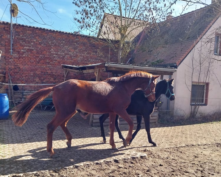 Nous proposons à la vente, au printemps 2026, un poulain mâle de trois ans, descendant du sang du étalon Trakehner Freiherr von Stein (Élevage de Moritzburg). Il est élevé en compagnie d’un autre étalon, qui partira début mars pour sa nouvelle maison. À partir de ce moment, Fürst Frederik pourra également rejoindre son nouveau foyer. Ses mouvements sont fluides, précis au rythme et caractérisés par une harmonie naturelle – un gage de succès futur en dressage. Avec son tempérament très amical et sa grande capacité d’apprentissage, il convient aussi bien à des cavaliers expérimentés qu’à des débutants ambitieux. Il possède une base solide, avec un postérieur actif, est très typé, vif d’esprit et sociable, et a toujours été en bonne santé. En tant que foal, il a été récompensé par une prime de naissance. Il a déjà acquis ses premières expériences en interaction avec l’humain et se montre calme et coopératif en toutes circonstances. Sur demande, il peut également être castré. Si vous recherchez un partenaire talentueux et attaché à l’homme pour la randonnée ou le sport, nous serions ravis de recevoir votre contact et de faire votre connaissance lors d’une rencontre.