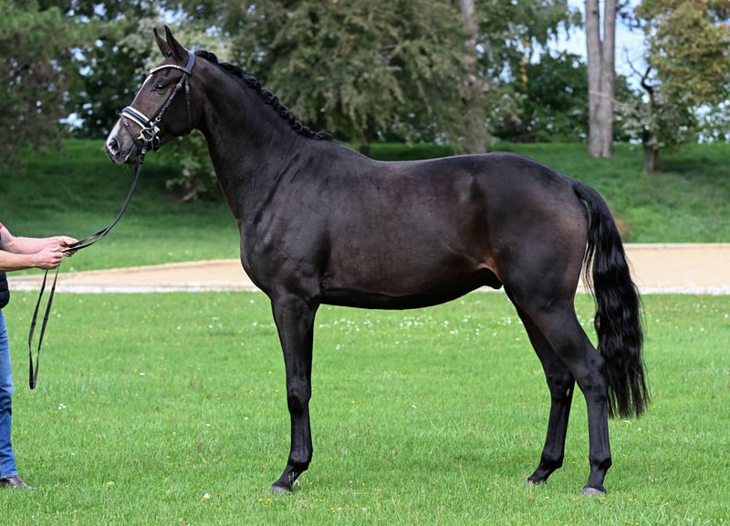 Hier geht's zur Kollektion und Online-Registrierung: https://auktion.pzvbw.de/auctions MwSt. 7,8 % Rohdiamant von höchster Qualität! In den Fußspuren seiner erfolgreichen Verwandtschaft: Vater Sky ist frisch gekürter Bundeschampion, Mutter Poetin brachte bereits zwei gekörte Söhne sowie mehrere M- und S-erfolgreiche Dressurpferde. Noch nicht öffentlich gezeigt. A diamond in the rough of the highest quality! Following in the footsteps of his successful relatives: sire Sky is the newly crowned Bundeschampion, dam Poetin has already produced two licensed sons as well as several successful top level dressage horses. Not yet shown in public.