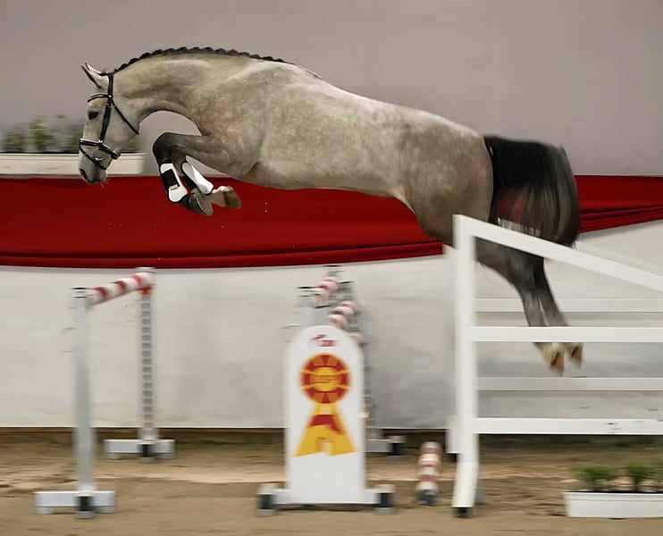Wir bieten einen 3jährigen Wallach von Dipylon x Colestus x Pasolini an. Er hat ein Stockmaß von 172 cm. Dieser Schimmel wurde letztes Jahr mit 2,5 Jahren durch uns selbst zur Vorauswahl der Körung vorbereitet und hätte auch die Zulassung zur Körung erhalten. Er wurde aufgrund eines Chip im Sprunggelenk aber nicht zur Auktion zugelassen. Der Chip wurde in einer kleinen OP im Januar entfernt und das Pferd ist wieder fit und könnte gearbeitet werden. Er hat sich bei uns im Training und auch bei der Vorauswahl mit viel Vermögen, Vorsicht, Intelligenz und Übersicht gezeigt. Wir glauben Er ist ein Pferd, dass ganz hoch hinaus kann. Ansonsten ist er super umgänglich und zeigt sich wie alle Pferde aus dieser Stutenlinie als tolles umgängliches Pferd mit Motivation in der Arbeit. Vater Dipylon war hocherfolgreich in der schweren Klasse bis 160 cm unter Michael Kölz und kann zahlreiche S-Siege vorweisen. Dipylon selbst stammt ab von Dinglinger x Lavall I. Mutter zu unserem Schimmel ist unsere Staatsprämienstute Perelisa v. Colestus und wurde selbst in ländlichen M-Springen geritten und platziert. Sie belegte beim Freispringchampionat in Leipzig 2015 den 3. Platz und bekam jeweils 9,0 für Vermögen und Manier. Im gleichen Jahr wurde sie auch beim Stutenchampionat von Sachsen-Thüringen Siegerstute gesamt und bei den springbetonten Stuten. Ihr erstes Fohlen von Balou du Rouet wurde 2018 Prämienhengst der Körung in Neustadt/Dosse. Ihr Stutfohlen von Baloutaire ist bereits selber Staatsprämienstute und stellte letztes Jahr ein Auktionsfohlen in Sauerlach. Ebenfalls im letzten Jahr wurde das Stutfohlen der Perelisa vom Nairobi de Muze Siegerfohlen der springbetonten Stutfohlen beim Fohlenchampionat in Moritzburg. TÜV des nunmehr Wallach ist sehr gut. Und wir sehen das Pferd in der Preisklasse um 15.000 VHB . Bei Interesse gern anrufen oder ne WhatsApp schreiben. Standort des Pferde ist 01945 Biehlen. Bei uns hat er zur Zeit Pause und dürfte auch noch mal zu Beginn des Sommer auf Koppel gehn und würde erst gegen Ende des Sommer angeritten werden.
