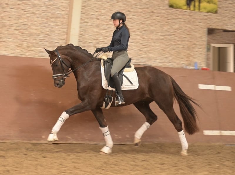 Liebe Interessenten, Für Terminvereinbarungen Probereiten senden Sie mir bitte eine WhatsApp. Für weitere Fragen bin ich tagsüber per WhatsApp erreichbar, telefonisch erreichen Sie mich am Besten zwischen 16 und 19 Uhr. Ich freue mich auf eine Kontaktaufnahme www.angelina-devittorio.de ⭐️ Floribeau ⭐️ Alter: 4 Jahre (2022) Größe: ca 1,61 m Abstammung: Floricello x Donnerhall Ausbildungsstand: angeritten AKU: Gute Röntgenbilder vorhanden Zum Verkauf steht ein außergewöhnlich hübscher und liebenswerter Dressur-Nachwuchs mit hervorragender Qualität. Ein absolut braver und unerschrockener Youngstar. Dieser traumhafte Wallach in eleganter Schokofuchs-Jacke überzeugt nicht nur durch seine traumhafte Optik, sondern vor allem durch seinen absolut verlässlichen und freundlichen Charakter. Er ist direkt vom Züchter und solide angeritten . Mit viel Ausdruck, einer sehr guten Grundqualität und einer hervorragenden Arbeitseinstellung begeistert er täglich aufs Neue. Er zeigt große Lernbereitschaft und möchte seinem Reiter stets gefallen – beste Voraussetzungen für eine erfolgreiche Zukunft im Dressursport. Auch in fremder Umgebung präsentiert er sich stets nervenstark, ausgeglichen und klar im Kopf. Er ist angenehm zu reiten, unkompliziert im Handling und im täglichen Umgang ein echter Schatz. Dank seines ausgeglichenen Wesens ist er absolut amateurtauglich und eignet sich hervorragend als Junioren- oder Einsteigerpferd. Ein echtes Traumpferd mit viel Qualität, tollem Charakter und großem Potenzial! ⚜️Tel: 0171-3438949 ⚜️a.devittorio@web.de ⚜️https://www.ehorses.de/angelinadevittorio Facebook und Instagram Angelina De Vittorio