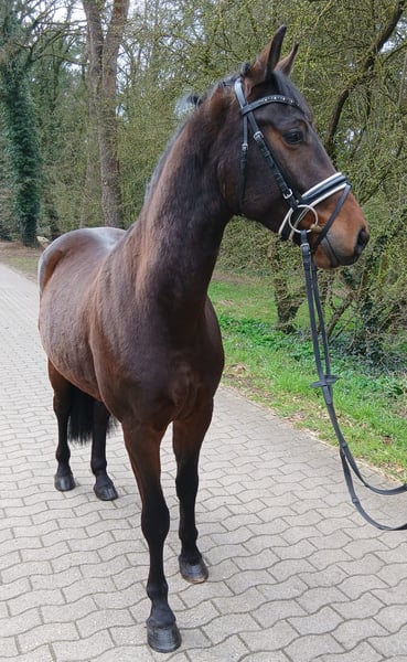 Viva Spezial combines elegance, rideability, and refined sensitivity into a harmonious package. Standing approximately 1.63 meters at the withers, he presents himself as a modern, compact sport horse—ideal for female riders who appreciate both quality and a good feel under saddle. Born directly from the breeder and raised under excellent conditions, he has a solid foundation, a clear temperament, and a very pleasant work attitude. His movements are elastic, rhythmically correct, and characterized by natural balance—excellent prerequisites for further sporting training. He is a horse that not only works but also thinks along. In capable hands, he develops into a partner who impresses with quality, rideability, and expression—without losing his inner calm. Under saddle, he shows good go, is very well controllable, and comfortable to sit. His sensitivity makes him particularly interesting for riders who value fine aids and harmonious riding. At a glance: - Gelding - Approx. 1.63 m at the withers – a modern, sporty type for women - Directly from the breeder, raised with high standards - Very well-behaved, clear-minded, and absolutely reliable in handling - Rideable, elastic movements with good balance - Pleasant go, finely controllable - Willing to learn with potential for further training - Suitable for ambitious riders with feeling and high standards - Confident in the terrain and on the arena - Sound in the forge and loading A horse for connoisseurs—possessing the potential to combine sporting development with refined riding culture in a special way. Priority over price!