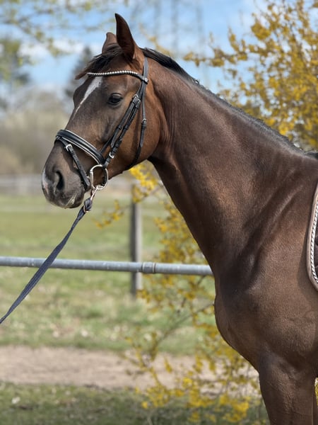 Talisman is a 4-year-old, lovingly raised dark chestnut gelding, bred on our own farm. He impresses with his exceptional calmness, clarity, and strong bond with people. He already proves to be an absolutely reliable partner both on the ground and under saddle – a horse that inspires confidence and provides a sense of security. ✨ His character: - Exceptionally well-behaved and easy to handle - People-oriented and friendly - Clear-minded, curious, and eager to learn ✨ Training: - Confident in handling (leading, grooming, tying) - Loads onto and off the trailer alone without issues - Familiar with double longeing - Walks over trot poles and jumps small obstacles - Already capable of riding a short solo trail ride - Experienced with rider changes Talisman is remarkably mature for his age and has a solid foundation. He is ideal for riders who want to further develop a young horse – also suitable for ambitious beginners with support. ✨ Pedigree: Total Diamond x Contendro – performance-oriented and interesting for versatile training ✨ Special features: A horse with a lot of heart and character, eager to please his handler while always remaining honest. You are very welcome to arrange a trial ride at any time. We will take plenty of time for you! Price plus statutory VAT.