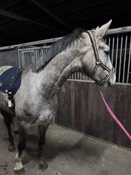 **Verkaufsanzeige: Deutsches Sportpferd – Springwallach, 2022, Apfelschimmel** Zum Verkauf steht ein vielversprechendes deutsches Sportpferd, ein eleganter Wallach, geboren im Jahr 2022. Mit seinem ansprechenden Apfelschimmel-Farbkleid zieht er sofort alle Blicke auf sich und überzeugt durch sein harmonisches Exterieur. Der Wallach verfügt über ein Stockmaß von 166 cm, was ihn zu einem idealen Partner für ambitionierte Nachwuchsreiter und erfahrene Reiter macht. Er ist brav im Umgang und zeigt eine ausgeglichene und lernbereite Charaktereigenschaft. Seine Bewegungen sind frei und taktsicher, was ihn zu einem vielversprechenden Springpferd für den Sport macht. Der junge Sportler wurde in Deutschland gezogen und ist bestens auf eine sportliche Karriere vorbereitet. Dank seines angenehmen Temperaments und seiner guten Grundausbildung ist er sowohl für den Turnierreitsport als auch für Freizeitreiter geeignet. Dieses talentierte Springpferd bietet eine hervorragende Basis für den Aufbau einer erfolgreichen Turnierkarriere oder als zuverlässiger Partner im Freizeitbereich. Bei Interesse freuen wir uns auf Ihre Kontaktaufnahme, um weitere Details zu besprechen und einen Termin zur Besichtigung zu vereinbaren.