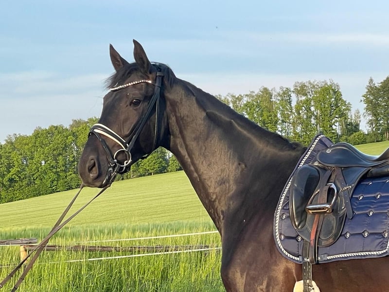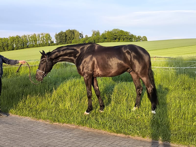 Este imponente semental, que aún está en crecimiento, cuenta con tres buenas y seguras marchas básicas. Destaca especialmente su paso amplio y siempre absolutamente seguro en el ritmo. Descendiente de Don Nobless x San Armour, este semental está todavía al comienzo de su formación y se muestra siempre amable en el trato y sin vicios. Ha sido montado de manera tardía y suave debido a su tamaño. Conoce la monta y el trabajo en la pista y en el campo, y ya ha salido a pasear a pie por el campo. Se comporta bien tanto solo como acompañado de otros caballos. Es manejable para el herrador y actualmente no tiene herraduras debido a la buena calidad de sus cascos. También se carga fácilmente y conoce remolques y transportes. Esta joya en bruto se vende por motivos personales y debido a un cambio de trabajo. Además, se ofrece por debajo de su valor debido a un pequeño hallazgo de un chip en un informe de TÜV que, de otro modo, es impecable.