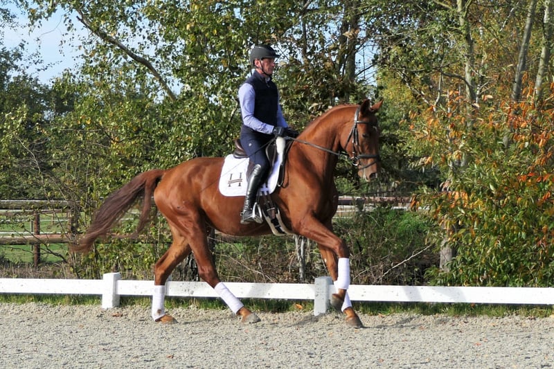 From loving upbringing, a handsome, large-framed chestnut gelding by Belantis II is for sale. This young gelding impresses not only with his expressive appearance and lovable personality but also with his rideability and willingness to learn. He is motivated under saddle, responds delicately to aids, and has three good basic gaits. Healthy, with recent good X-rays, ready for further training.