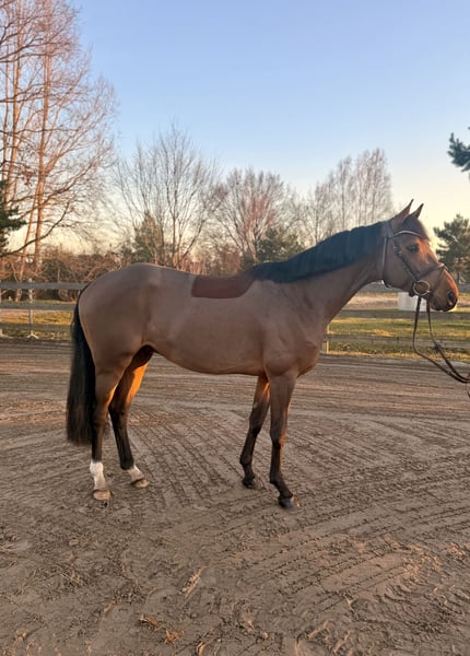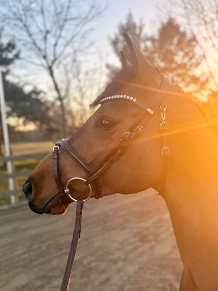 Zum Verkauf steht ein richtig toller 5-Jähriger Wallach. Abstammend von Balzaci x Saccor, mit einer Größe von ca. 1,58m, noch im Wachstum stehend. Er ist mit sehr guten GGA und einem tollem Sprungablauf ausgestattet und lässt sich einfach nur toll reiten. Bereits jetzt schon super geeignet für jüngere Reiter. Mit seiner tollen Einstellung bereitet er täglich Freude. Ein ganz feiner aufgeschlossener und äußerst freundlicher Wallach der auch auswärts zu überzeugen weiß. Er lässt sich problemlos alleine verladen (auch ganz allein-egal ob LKW oder Anhänger). Er zeigt sich absolut vorbildlich beim Tierarzt (bisher nur zum impfen) und beim Schmied. Für seinen ersten Turnierstart steht er in den Startlöchern. Er ist gesund, steht korrekt auf den Beinen und besitzt keine Unarten, er hat noch nie einen falschen Schritt gemacht. Ausprobieren jederzeit nach Absprache möglich. Er wird nicht zur Verfügung gestellt, bringt kein Equipment mit und ein Tausch ist ausgeschlossen. Wir suchen ein tolles Zuhause für diesen hübschen Kerl.