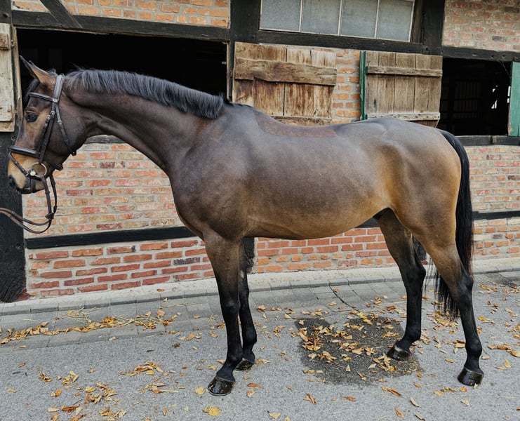 Inquiries please exclusively via phone or WhatsApp at +49 1511 7665701. For sale is this 5-year-old gelding by Singlord Joker x Calido. Smint stands 16.1 hh and impresses with his loving nature and attitude over fences. He is very responsive to the aids and jumps effortlessly from any situation. Currently, he is beginning his career in jumping with Amateur riders in Springpferde A and has already been placed on his first start. He is also very well-behaved and uncomplicated in handling. Suitable for riders of all levels, including children and amateurs. A current veterinary certificate is available. Videos can be sent upon request. We have several horses for sale, please feel free to browse our profile.