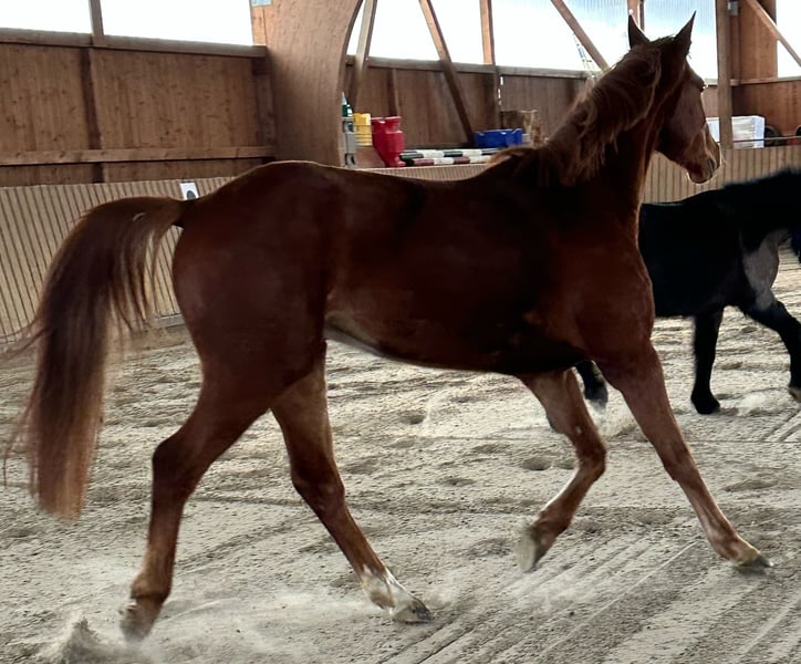 Traumhafter Fuchswallach noch im Wachstum stehend aus 05/2021. Schöne Bewegungen Freundliches Wesen Menschbezogen Verspielt Dynamisch Kennt: Sattel Trense Jungpferde ABC Halfterführig Gut zu longieren Eindecken unproblematisch Kennt Fliegenspray etc. Lässt sich überall anfassen Geht gerne spazieren. Ist hierbei auch allein souverän und an seiner Umwelt positiv interessiert. Kann am Stallhalfter spazieren gehen. Kann auch am Stallhalfter longiert werden. Bei fremden Umwelteinflüssen etwas spannig aber mit solidem Interesse. Er schaut sich alles an. Wird nie kopflos und ist immer ohne Probleme zur Ruhe zu bringen. Ein Pferd das bei solider Ausbildung ein sehr gutes Freizeitpferd ggf. gutes Junioren-Sportpferd werden kann. Tetanus/Influenza geimpft. Keine bekannten Krankheiten.