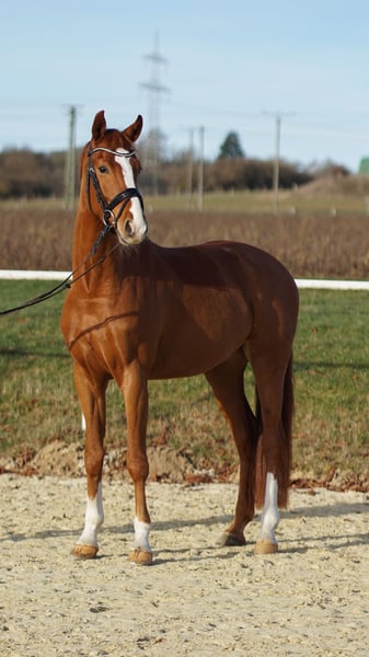 Snoopy ist ein vierjähriger Wallach, welcher durch seine liebe und treue Art besticht. Außerdem bringt er Potential für den Sport mit welches er auch auf dem Turnier schon unter Beweis stellen konnte. Neben der dressurlichen Ausbildung wird er regelmäßig gesprungen und geht ins Gelände. Snoopy ist sowohl für Freizeitreiter als auch Personen mit Ambitionen fürs Turnierreiten geeignet. Röntgenbilder liegen aus August `25 vor und sind ohne Befund. Für weitere Informationen und Fragen rund um Snoopy oder eventuelles Kennenlernen können Sie mich gerne jederzeit telefonisch kontaktieren oder mir eine Nachricht schreiben.