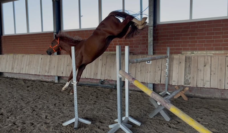 Claus es un caballo impresionante. Con forma de semental y una belleza excepcional, este magnífico caballo es un ejemplar muy atractivo. Está en las primeras etapas de su carrera deportiva y hasta ahora no ha cometido ningún error. Tiene la mente muy clara y es muy dócil en el manejo. Está completamente vacunado, siempre desparasitados y camina sin herraduras. Claus se vende en nombre del criador. Ya lo hemos montado con cuidado y actualmente realiza sus primeros saltos bajo la silla. También ha aprendido a superar troncos y los pasa sin problema. Incluso bajo la silla de doma, luce muy bien. Claus ya tiene un informe veterinario y un chip sin preocupaciones. En caso de interés serio, puedo enviar el informe veterinario y videos en movimiento bajo la silla. Dos hermanos de Claus compiten con éxito en el deporte. Uno hasta 1,45 m y otro hasta 1,40 m. Uno de estos hermanos también está en nuestro establo y en nuestra propiedad.