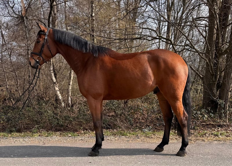 Emil, 5-jähriges Deutsches Sportpferd, steht zum Verkauf. Ein moderner, sportlicher Wallach mit ansprechendem Exterieur, sehr guten Grundgangarten und angenehmer Rittigkeit. Er wurde in diesem Jahr schonend an den Turniersport herangeführt und wurde in Springprüfungen bis zur Klasse A** vorgestellt. Hier konnte er sich mit einer Amatuerin direkt im A* platzieren. Dabei zeigt er sich stets nervenstark, motiviert und mit einer positiven Arbeitseinstellung. Im täglichen Umgang ist Emil unkompliziert und zuverlässig. Er ist schmiede- und verladefromm und überzeugt durch sein ausgeglichenes, freundliches Wesen. Dadurch ist er auch für ambitionierte Einsteiger oder Reiter mit weniger Erfahrung gut geeignet. Er verfügt über einen guten TÜV und bringt beste Voraussetzungen mit, um weiter gefördert zu werden. Ein talentiertes, ehrliches Pferd mit Perspektive, das seinem Reiter jeden Tag Freude macht – sowohl im Training als auch auf dem Turnier. Bei ernsthaftem Interesse freuen wir uns über eine Nachricht.