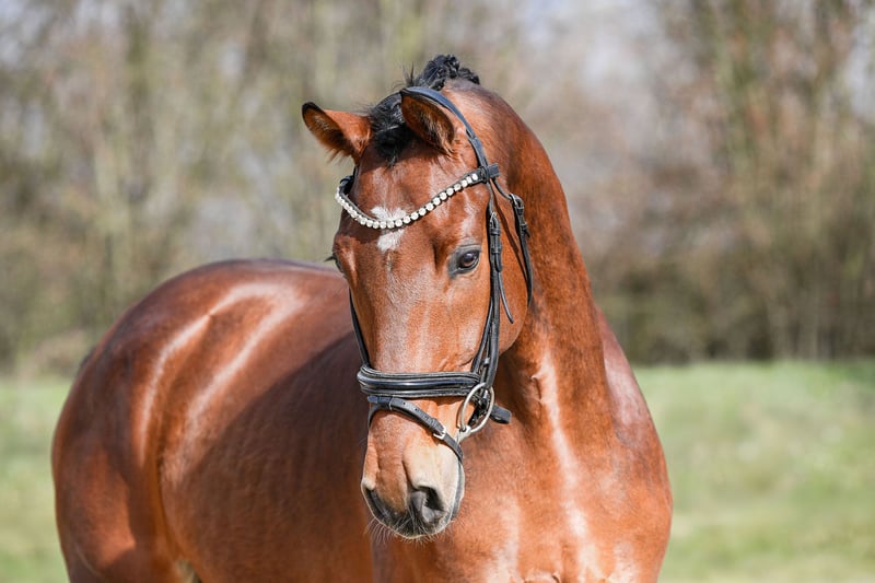 Giovane cavallo da dressage pronto per il lavoro in sella