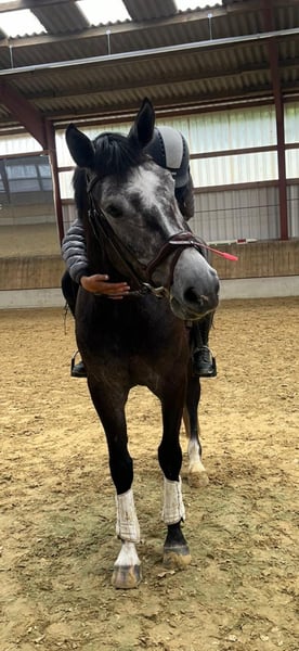 Onverbruikt en zeer veelbelovend! Contagio x Coronas x Goldlack Campino is een 5-jarige schimmelruin die loyaal en mensgericht is. Om persoonlijke redenen en door gebrek aan ruiter nog niet op de wedstrijd voorgesteld. Hij is volledig inzetbaar en wacht op de juiste ruiter die met hem wil doorstarten. Voor het parcours en de veelzijdigheid is hij een absoluut toppaard en ook in de dressuur hoeft deze jonge man zich niet te verbergen. Hij toont altijd losse en ruimtelijke basisgangen. Momenteel is Campino als een vrij karaktersterk puber te koop voor ervaren ruiters! Er is veelzeggend videomateriaal beschikbaar. Actuele röntgenfoto's van hoofd tot hoef zijn ook beschikbaar.