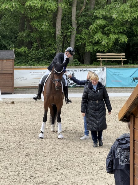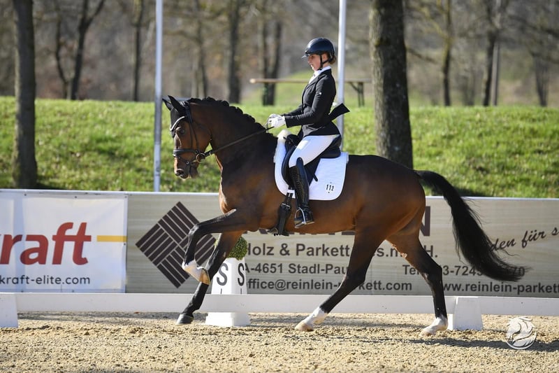 Zum Verkauf steht ein spitzen Dressurausbildungspferd mit Perspektive für den gehobenen Dressursport. Drei sehr gute Grundgangarten, die allesamt auch schon mit 8er Noten honoriert worden sind und ein und Bergauf konstruiertes Exterieur kennzeichnen seine Veranlagung. Vierjährig konnte er Reitpferde- und Dressurpferdeprüfungen der Klasse A gewinnen. Er siegte im Gert Gussmann Cup Finale, einer Serie für die besten 4jährigen Pferde Süddeutschlands. Diese Saison konnte er Dressurpferde L gewinnen. Über seine Grundqualität hinaus, begeistert der Wallach mit einer tollen Arbeitseinstellung und Rittigkeit, seine schwungvollen Gangarten nehmen den Reiter hervorragend mit.