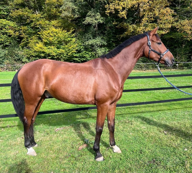 Dieser junge Wallach überzeugt durch sein charmantes Wesen, seine gute Erziehung und seine hervorragende Grundqualität. Er hat eine solide Grundausbildung genossen und zeigt sich im täglichen Training stets arbeitswillig und lernbereit. ✅ Bereits einmal turniermäßig vorgestellt ✅ Unkompliziert im Umgang – auch auswärts brav und gelassen ✅ Sicher im Gelände und auf dem Platz ✅ Eignet sich perfekt als Amateurpferd zum sofortigen Losreiten ✅ Röntgenbilder vorhanden Ein echter Partner fürs Leben mit klaren Nerven, ehrlichem Charakter und schönem Exterieur. Er ist sowohl für Dressur, als auch mit Perspektive für Vielseitigkeit oder Springen geeignet. Probereiten nach Absprache jederzeit möglich. Wir nehmen fürs Probereiten 30 Euro, was natürlich beim Kauf gegen gerechnet wird. Bei Interesse oder Frag gerne melden