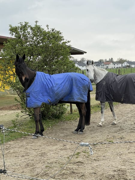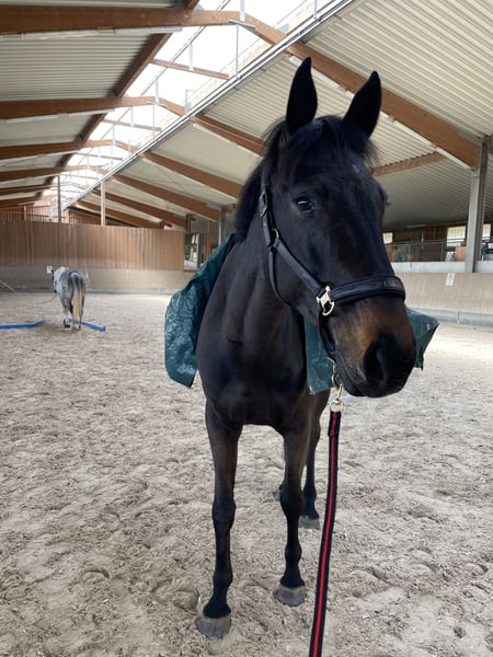 Zum Verkauf steht ein hübscher, doppelt veranlagter 5 jähriger Wallach Casskeni II x Convoi. Nino ist erst seit kurzem bei mir aber leider kann ich ihn aufgrund von persönlichen und verletzungsbedingten Umständen nicht behalten (näheres gerne telefonisch). Er war bereits einige Male auf Turnier und ist Springpferde A** platziert. Weitere Videos sind auf Rimondo unter Camino L 3 zu sehen. In der kurzen Zeit bei mir hat er sich von Tag zu Tag besser entwickelt, unter dem Sattel ist er sehr bemüht und arbeitswillig und macht echt Spaß. Er hat einen traumhaften Galopp und nimmt auch unerfahrene Reiter toll am Sprung mit. Er ist fremden Sachen gegenüber sehr aufgeschlossen, Schrecktraining hat er mit Bravour absolviert, alleine verladen hat er sich auch innerhalb 2 Einheiten beibringen lassen. Im Auswärtstraining zeigt er sich seines Alters entsprechend brav. Ausreiten kennt er auch und macht es in neuer Umgebung sehr souverän. Somit schmiede- und verladefromm. Ich suche für ihn ein Zuhause in dem er lieb gehabt wird und sich gerne auch sportlich weiter entwickeln kann. Ich kann ihn mir auch in der Dressur gut vorstellen, da er tolle Bewegungen hat. Ein Einsatz als Voltigierpferd aufgrund seiner Größe wäre auch denkbar, dazu kenne ich mich aber zu wenig aus. Probereiten ist jederzeit möglich Eine aktuelle AKU sowie Röntgenbilder vom Rücken liegen vor. In Stresssituationen schluckt er Luft. Bitte telefonische Anfragen unter: 0172/8928722