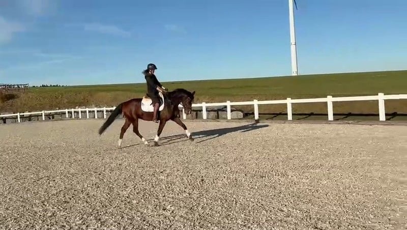 For sale is an attractive five-year-old gelding with a lovely uphill canter, good walk, and excellent trot with great basic mechanics. He is very rideable, completely clear-minded, and always eager to do his best. In terms of quality and temperament, he is an ideal young sport and leisure horse with potential. He also proves to be consistently uncomplicated and reliable in handling, familiar with hacking alone, farrier visits, trailer loading, different arenas, and much more. Directly from the breeder. Excellent X-ray images available. Fully vaccinated and regularly dewormed. Please feel free to contact me by phone for further questions (preferably between 4-7 pm): 015203215322.