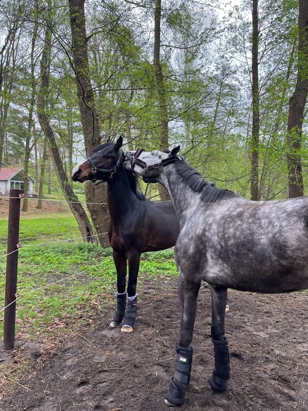 Extremely rideable and people-oriented. Intensively trained for about 14 months now. Very secure and motivated in the terrain and fearless. Therefore, the perfect horse for everything that is "outdoors," such as trail rides, hunting, etc. Also trained for the regular show jumping course and laid the foundations for optimal rideability and sensitivity. A great partner for the future. Currently still growing a bit. Feel free to come and see and try riding. The trainer has invested a lot of time to shape a wonderful partner. Haribo rides fantastically and also looks really good :-). It is also manageable for less experienced riders. Could also remain at the location and continue training (by arrangement). Born and raised at the State Stud Neustadt-Dosse. Presented for the show jumping stallion licensing. For sale on behalf.