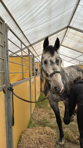 Extrêmement montable et proche de l'homme. Entraîné intensivement pendant environ 14 mois. Très sûr et motivé en extérieur et intrépide. C'est donc le cheval parfait pour tout ce qui se passe "dehors", comme les randonnées, la chasse, etc. De plus, il est formé pour les parcours de saut d'obstacles classiques et pour acquérir les bases d'une bonne montabilité et sensibilité. Un excellent partenaire pour l'avenir. Actuellement, il est en pleine croissance. N'hésitez pas à venir le voir et à l'essayer. L'instructrice a investi beaucoup de temps pour en faire un partenaire exceptionnel. Haribo se monte fantastiquement bien et a en plus une très belle apparence :-). Il est également facilement gérable par des cavaliers moins expérimentés. Haribo a aussi de l'expérience avec des sorties à la plage (Mer Baltique) et est vraiment un bon "copain". Pour le bon cavalier, il sera un "cheval d'âme". Ensemble, vous pourrez affronter toutes les épreuves. Il pourrait également rester sur place et continuer son éducation (sur accord). Né et élevé au Haras de Neustadt-Dosse. Présenté pour la sélection des chevaux de saut. À vendre pour le compte de quelqu'un.
