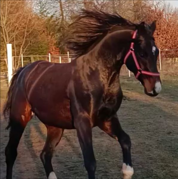 Dieser ausdrucksstarke Hengst von Escamillo x Quaterback verfügt über hervorragende Bewegungen. Er war noch nie krank oder verletzt. Er hat einen tollen Charakter und ist sehr gelehrig. Der Vollbruder der Mutter ist gekört, war bereits 6-jährig M-siegreich und geht erfolgreich Grand Prix. Sein Bruder von Escolar ist S-Dressur und M-Springen erfolgreich. Selbstverständlich kann er auf Wunsch gelegt werden. Escamillo war Prämienhengst seiner Körung 2017 in Verden, legte 2018 seinen 14-Tage-Test mit der Dressurnote 9,08 ab und absolvierte 2020 seinen Sporttest unter Helen Langehanenberg mit der Siegerbewertung von 9,36. Unter der Olympia-Teamzweiten qualifizierte er sich auch fünfjährig mit einer 9,5 für die Dressurpferde-Bundeschampionate. Züchterisch gehört Escamillo schon jetzt zu den erfolgreichsten Beschälern. Quaterback, selbst Bundeschampion (Note 10,0 auf den außergewöhnlichen Trab). Der zuletzt auf Platz vier der weltbesten Dressurvererber rangierende Elitehengst stammte aus der Neustädter P-Familie und sammelte nach seinem überragenden Sieg auf dem Bundeschampionat 2006 wiederholt Titel in Dressuren bis zur schweren Klasse. Weltweite Maßstäbe setzte Quaterback allerdings nicht im aktiven Sport, sondern in der Zucht. So lieferte der Quaterman-Sohn zahlreiche gekörte Hengste sowie im Grand Prix-Sport erfolgreiche Nachkommen.