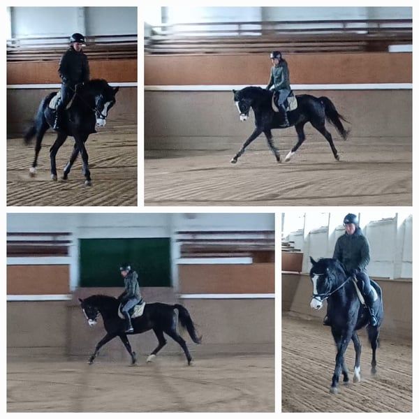 Unser Bugatti SB ist ein echter Hingucker - schön, auffällig und mit absoluter Wiedererkennungsgarantie! Bugatti ist bei uns geboren, menschenbezogen aufgewachsen und wurde zur professionellen Ausbildung in das Brandenburgische Haupt- und Landgestüt in Neustadt/Dosse gegeben. Dort wurde er Ende 2023 schonend und altersgerecht angeritten. Er ist ein kleiner Streber, absolut unkompliziert und begeistert mit seinem entspannten Wesen. Er zeigt drei sehr gute Grundgangarten und hat auch schon ein paar kleine Sprünge in der Freispringbahn absolviert, wobei er mit viel Übersicht bei der Sache war. Da er auf einem Bauernhof geboren wurde und aufgewachsen ist, sind Maschinen wie Traktoren, Hoflader, Mini-Bagger bis hin zu Laubbläsern und Kreissägen absoluter Alltag für ihn. Er ist dabei aufgeschlossen und beobachtet das Geschehen mit totaler Gelassenheit. Der Umgang mit Stuten ist kein Problem - im Stall war seine Pferdebox zwischen zwei Stuten und seine Mutter (mit Fohlen) stand direkt gegenüber. Derzeit befindet er sich in einem gemischten Stall mit Einzelboxen. Sein Vater der Neustädter Hengst Blanc Pain/T. war in der Dressur Kl. S siegreich. Im Jahr 2021 wurde Blanc Pain aufgrund seiner überdurchschnittlichen Eigenleistung im Sport sowie der Qualität seiner ersten beiden Fohlenjahrgänge vom Trakehnerverband mit dem Titel Elite-Anwärter ausgezeichnet! Im Jahr 2024 wurde ein Sohn des Blanc Pain zum Siegerhengst der Trakehner-Körung in Neumünster! Der Vollbruder von Bugatti´s Mutter "Lord Capri SB" konnte bereits seine ersten S-Platzierungen in der Dressur mit seiner Besitzerin sammeln, worauf wir sehr stolz sind. Aufgrund seiner Präsenz und seiner sehr guten Grundgangarten können wir uns Bugatti auch im Fahrsport im Einspänner oder Passgespann sehr gut vorstellen.