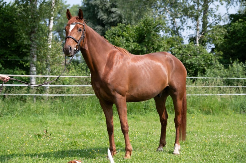 Wir bieten einen traumhaft schicken Fuchswallach mit ausgezeichnetem Interieur und sehr guten Grundgangarten. Das Pferd ist getüvt mit sehr gutem Ergebnis. Er ist außergewöhnlich freundlich und umgänglich. Er lernt schnell und gerne, war 2025 ein halbes Jahr lang in Beritt, ist aber noch unausbalanciert und benötigt eine/n Reiter/in mit Erfahrung, um sein Potenzial entfalten zu können. Wir bieten ein top gesundes Pferd zum Verkauf, das seinem neuen Besitzer viel Freude im Sport wie in der Freizeit bereiten wird. Da wir aktuell leider keinen Reiter für das Pferd haben, steht er nun seit einem halben Jahr mehr oder weniger auf Koppel, was sehr schade ist, und wir hoffen sehr, dass er nun auf diesem Wege einen Liebhaber finden wird, rechtzeitig, um ihn für die anstehende Turniersaison oder aber für den Freizeitbereich vorbereiten zu können.