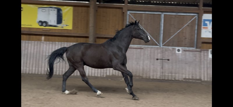 Konrados ist ein Sechsjähriger Wallach, er ist gezogen in Litauen, hat aber bestes deutsches Springpferde Blut in seinen Adern. Er wird aus persönlichen Gründen verkauft. Die Tochter hört leider mit dem Reitsport auf. Leider hat er durch mangelnde Pflege der Hufe Zwang entwickelt und einen Hornspalt. Aktuell trägt er einen orthopädischen Beschlag, damit das raus wachsen kann. Deshalb ist er so günstig. Er ist Parcours sicher, braucht aber die nötige Zeit bis er wieder springen darf. Er kann Probe geritten werden.
