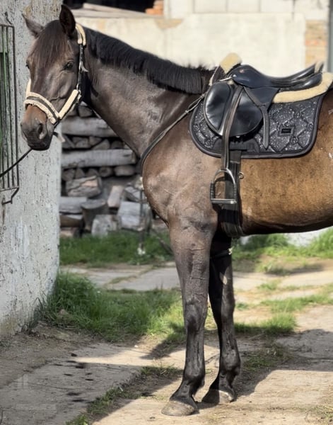Sprzedawany jest piękny 6-letni wałach rasy DSP (wysokość 1,73 m) o doskonałej linii skokowej i dużym potencjale. Charakteryzuje się bardzo przyjaznym i spokojnym charakterem. Idealny dla ambitnych jeźdźców startujących w konkursach lub jeżdżących rekreacyjnie, którzy chcą samodzielnie kontynuować jego szkolenie. Karli był już w wieku 4 lat wprowadzony do jazdy pod siodłem i jest nadal delikatnie, a jednocześnie różnorodnie szkolony. Już również chętnie i grzecznie chodzi w teren. W kontaktach, podczas czyszczenia i u weterynarza zachowuje się spokojnie. Ze względu na wiek i poziom szkolenia nie jest odpowiedni dla początkujących ani jeźdźców powracających do jazdy. Aktualne badanie USG nie jest dostępne, ale może zostać zlecone przez nabywcę. Nie stwierdzono żadnych ograniczeń zdrowotnych. Posiada blok AV, który nie wpływa na jego funkcjonowanie (jest to powszechne u sportowych koni startujących w konkursach). Próba jazdy możliwa w każdej chwili. Koszt to 30 €, aby zapobiec turystyce jeździeckiej. W razie zainteresowania prosimy o kontakt. Ze względu na nasz pośpiech, przy natychmiastowym odbiorze lub szybkim podjęciu decyzji o zakupie możliwa jest większa zniżka. Brak możliwości odsprzedaży lub zakupu na raty.