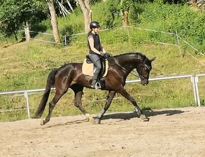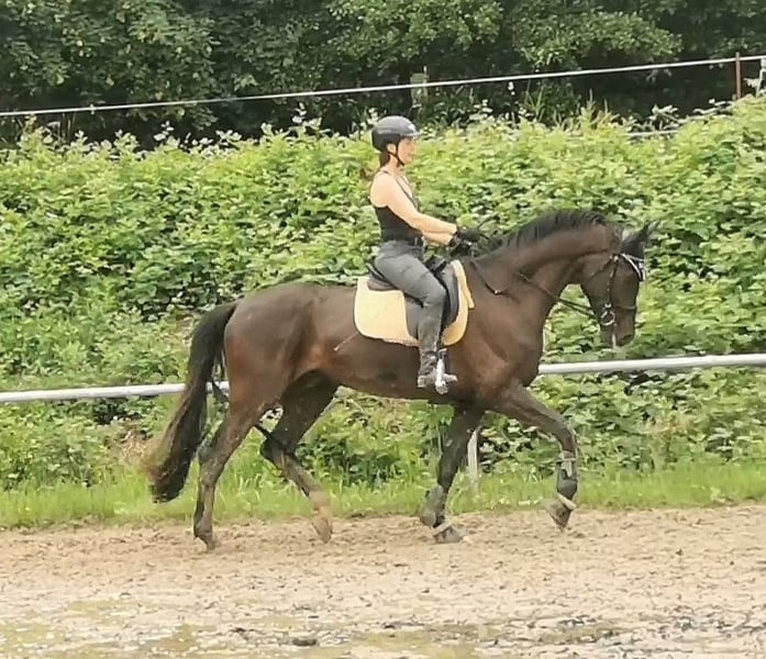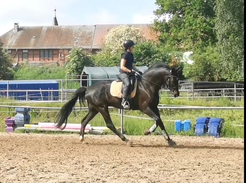 For sale: German sport horse – Black gelding, born in 2020 Up for sale is a stunning, elegant, and versatile German sport horse gelding. Born in 2020, he impresses with his noble appearance and excellent pedigree. I purchased him myself as a young dressage prospect up to S level (at a high purchase price!). He has three consistently very good basic gaits that feel fantastic. He has a comprehensive pre-purchase examination from early 2024, which was completely clean. There are also recent, up-to-date X-rays available. Over time and through training, a few findings and challenges have emerged, making me feel that further training with my rather ambitious sport goals might be too risky. He loves outdoor riding and has enjoyed being a trail horse since he was three years old. Ideally, he could find a new home as a trail or cross-country horse. If you are interested or have further questions, I am happy to provide transparent information in a conversation for the well-being of the horse.