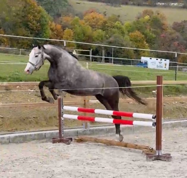 German Sport Horse for Sale – Gelding, born 2020, grey, height 177 cm. Cosido x Actic x Goldfarn This German sport horse impresses with its versatility and noble appearance. Under saddle, he confidently jumps at novice level and is well-trained in dressage at elementary level. With a height of 177 cm, he offers the ideal size, making him suitable as a transition horse from pony sport. The gelding is healthy, regularly vaccinated and dewormed. He is suitable for both competitive riding and for ambitious leisure riders. If you are interested or would like more information, please feel free to contact me. Viewing and trial riding are available by appointment.