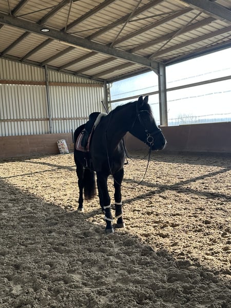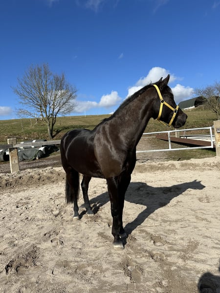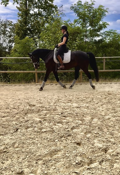 7-year-old gelding, 165 cm, looking for supportive hands With a heavy heart, I offer my 7-year-old gelding (height 165 cm) for sale. I have been with him since his birth and started him gently under saddle at 3.5 years old, continuously training him. He has a solid grasp of the basics and already knows some first lessons such as: • Cantering from walk • Lengthening strides • Lateral movements He is a talented horse with a lot of potential but still needs a supportive and consistent hand. Therefore, he is not suitable for beginners and should be further developed by an experienced, assertive rider. Due to professional reasons, I unfortunately lack the time to do him justice. Therefore, I wish for him to find a home where he can continue to be developed and showcase his qualities. The sale will only be to the best hands and to people who are willing to responsibly accompany his further journey. To receive only serious inquiries, I charge €50 for a trial ride. This amount will, of course, be deducted from the purchase price.